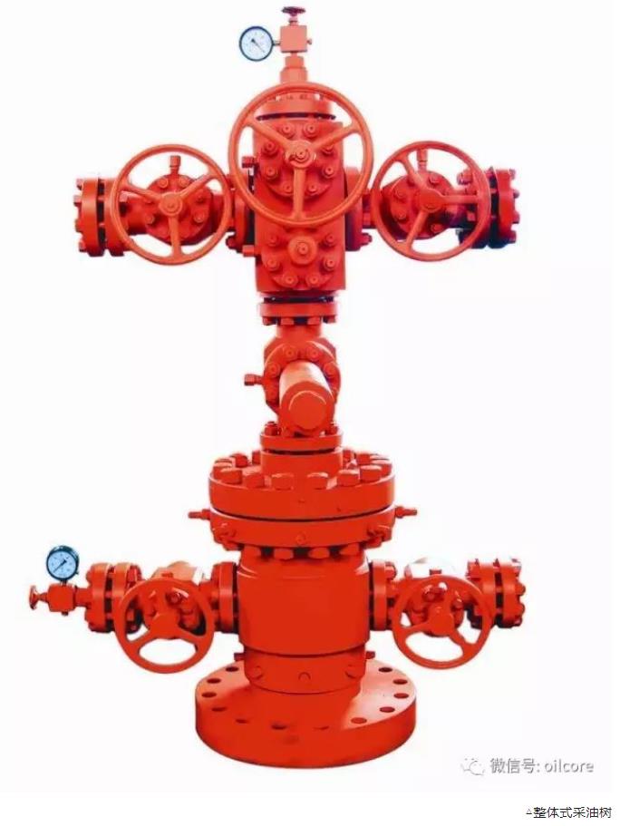 整體式是將主閥、安全閥、清蠟閥和翼閥等制成一個整體部件,閥與閥之間的距離較小,既省空間又耐高壓,特別適用于海上平臺的油氣井。