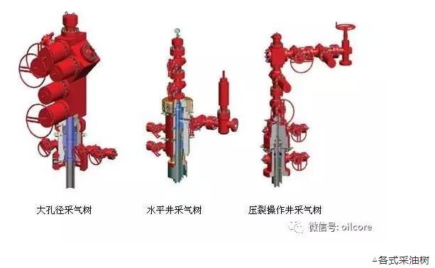 按生產井類別和完井生產方式,可分為自噴井、電潛泵井、氣舉井、螺桿泵井和注水井、氣井的采油樹等。
