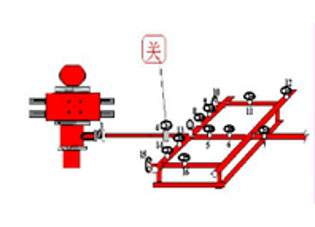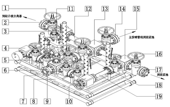 節流管匯的中間主放噴管線為關閉狀態。兩側的閘閥打開,調節兩側節流閥開度大小來控制井底壓力。