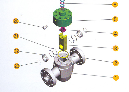 ◎閥體、閥蓋之間采用新型閉紋槽式密封環,螺柱連接,結構簡單,密封可靠;