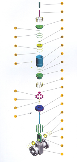 我公司生產(chǎn)的液壓平板閥,啟閉機構(gòu)采用液壓控制形式,工作平穩(wěn)、操作方便,其廣泛用于自動控制系統(tǒng)及遠程控制。 主要規(guī)格及技術(shù)參數(shù) 額定壓力:14-105Mpa(2000-15000psi) 公稱通徑:46-103mm(113/16-41/16in.) 工作溫度:P U 性能級別:PRI-2 規(guī)范級別:PSL1-3 材料級別:AA-FF 操作壓力:7.5-10.5Mpa(107-1500psi)