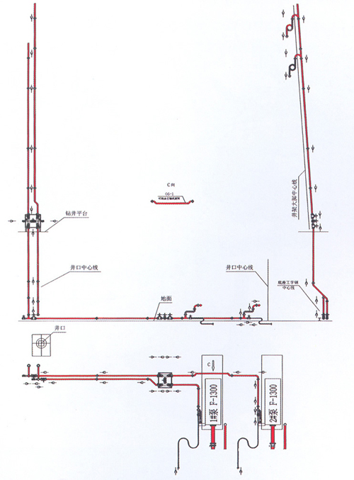 ZJGH100/35鉆井液管匯由Z23Y100-5000PSI和Z23Y50-5000PSI泥漿閘閥、高壓球面由壬、高壓錐面由壬、三通、高壓軟管、彎頭、壓力表、短節(jié)等組成。 地面閥門組采用鵝形三通結(jié)構(gòu),具有結(jié)構(gòu)緊湊、流體阻力小、能做充分發(fā)揮功率的特點(diǎn)。 鉆臺(tái)閥門組采用異徑四通,可實(shí)現(xiàn)單管直接使用,便于現(xiàn)場(chǎng)使用。 高壓由壬采用高強(qiáng)度合金鋼制造,并經(jīng)過(guò)熱處理。結(jié)構(gòu)上可實(shí)現(xiàn)快速裝卸作業(yè)。由壬由專用機(jī)具制造。通過(guò)精加工的球面、錐面配合密封圈實(shí)現(xiàn)密封。 Z23Y-5000PSI泥漿閘閥的閘板和閥座均采用硬質(zhì)合金噴焊,具有耐沖刷、耐腐蝕特點(diǎn),大大地提高閥門的使用壽命,并且操作力矩小,開(kāi)關(guān)輕便等特點(diǎn)。 管匯的彎頭、異徑管、三通及四通等采用高強(qiáng)度合金鋼鑄造,適當(dāng)加厚了管壁,并經(jīng)良好的熱處理,能充分滿足強(qiáng)度和耐腐蝕要求。 對(duì)精度要求高的零件采用專用工藝加工,以保證制造質(zhì)量;對(duì)受高壓零件在裝配前均經(jīng)過(guò)靜水壓強(qiáng)度和密封試驗(yàn),嚴(yán)格保證出廠質(zhì)量。 ☆安裝: 1.安裝時(shí),應(yīng)先洗凈各由壬密封面及密封圈溝槽,涂抹潤(rùn)滑脂,清除管道內(nèi)臟物。 2.仔細(xì)檢查各連接處是否上緊。 3.搬遷時(shí)可將個(gè)零件拆開(kāi),管線清洗干凈,接合部位涂潤(rùn)滑油脂后包扎,以免贓物進(jìn)入和碰壞絲扣和密封面。 ☆使用要點(diǎn)和維護(hù)保養(yǎng): 1.定期給泥漿閘閥加注鈣基潤(rùn)滑脂,保養(yǎng)閘閥。 2.定期檢查各部位連接和固定螺栓是否松動(dòng)。 3.發(fā)現(xiàn)密封部位滲漏時(shí),應(yīng)及時(shí)更換密封件,以防損壞相關(guān)金屬件。 4.保持管匯外表清潔,定期涂漆防腐。 ☆注意事項(xiàng): Z23Y-5000PSI硬密封泥漿閘閥僅作為管道關(guān)閉、開(kāi)啟使用、不可作節(jié)流閥使用,以防節(jié)流使用沖壞密封面。