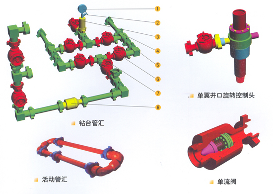 在測試過程中,地層流體經(jīng)鉆桿或油管流到地面之后,必須要有控制裝置引導(dǎo)到分離器和燃燒器中。此裝置稱為地面控制裝置。它可以安全有效地控制流體的壓力和流量。 一、控制頭 控制頭連接在測試管柱的最上部,分為旋轉(zhuǎn)的和不旋轉(zhuǎn)的兩種。根據(jù)其承壓能力可分為35Mpa、70Mpa和105Mpa三種。控制頭既可讓管柱內(nèi)高壓液流流出,也可向井內(nèi)泵入流體。 二、鉆臺(tái)管匯 用于控制流體壓力、流量的管匯。上接控制頭,下連分離器、放噴管線。 鉆臺(tái)管匯的工作壓力分為35Mpa、70Mpa和105Mpa。相應(yīng)的試驗(yàn)壓力為70Mpa、105Mpa和140Mpa。 三、活動(dòng)管匯 用于連接控制頭、鉆臺(tái)管和放噴管線的高壓活動(dòng)管匯。它由特制加厚無縫鋼管和由壬及活動(dòng)彎頭組成。 管匯工作壓力分為35Mpa、70Mpa和105Mpa。相對應(yīng)的試驗(yàn)壓力為70Mpa、105Mpa和140Mpa。 活動(dòng)管匯要定期檢查、潤滑、更換密封圈和進(jìn)行液壓密封檢驗(yàn),確保測試安全。